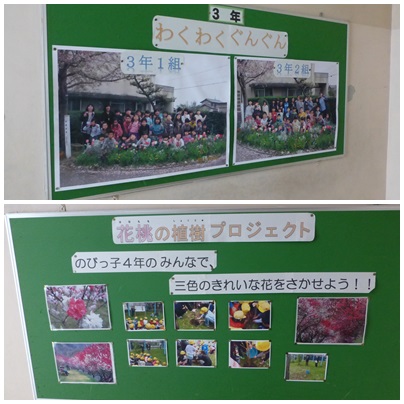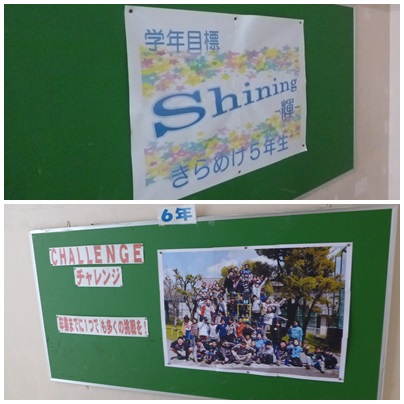 3年から6年までの学年がそれぞれ趣向を凝らして、掲示物が貼ってありました。