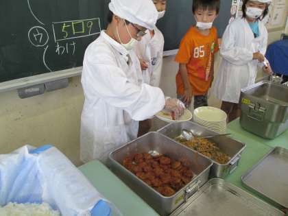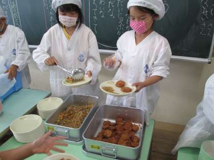 今日の給食に、愛知のミニハンバーグがでました。