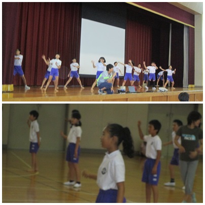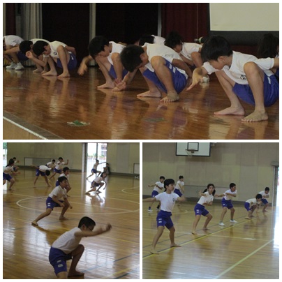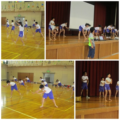 6年生が体育館で、ロックソーランの練習に励んでいました。