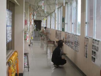 5年生の廊下には、野外学習の写真が