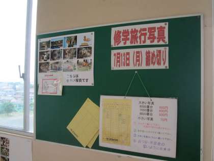 6年生の廊下には、修学旅行の写真が貼りだしてありました。