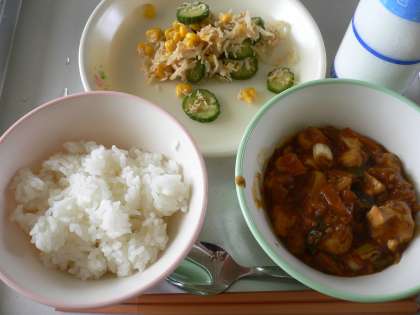 今日の給食は、マーボー豆腐でした。