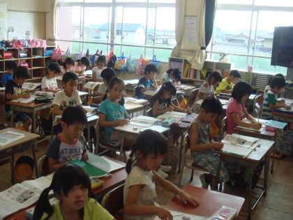 午後、暑い中、2年生が一生懸命に勉強をしていました。