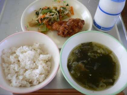 それもそのはず。今日の主菜は、大きな大きなからあげ。ずしりと感じたようです。