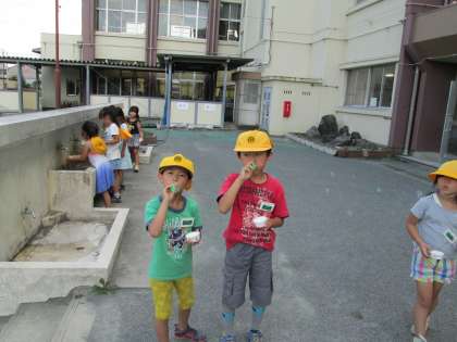 1年生で、シャボン玉の学習をしていました。