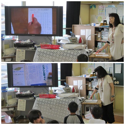 担任の先生が、書画カメラを使い、わかりやすいように説明していました。