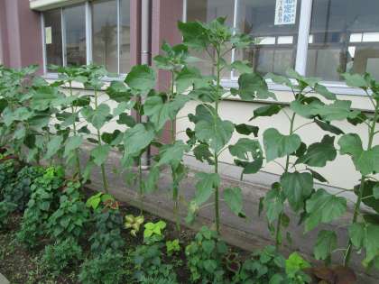 運動場北側のひまわりはほどぼどの大きさです。