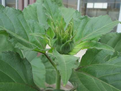 花壇のひまわりが大きくなってきました。