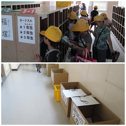 廊下には、夏休みの応募作品を入れるダンボールも並んでいます。