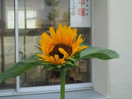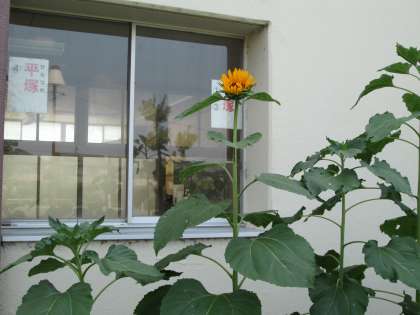 花壇のひまわりがついに咲きました。