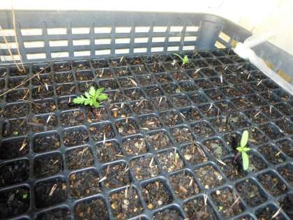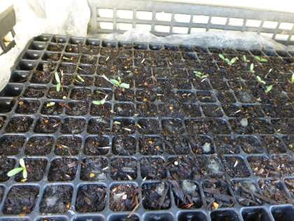 東門付近で育てているマリーゴールドが発芽してきました。