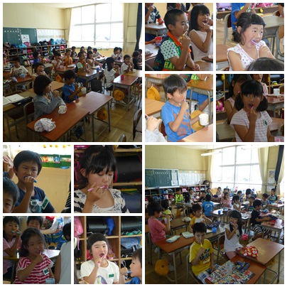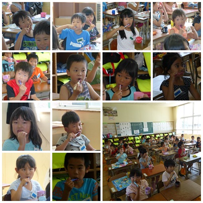 歯みがきは、給食後、クラス一斉に音楽に合わせて行います。