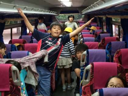 退村式を終え、バスに乗車します。これから、扶桑東小学校に向かいます。