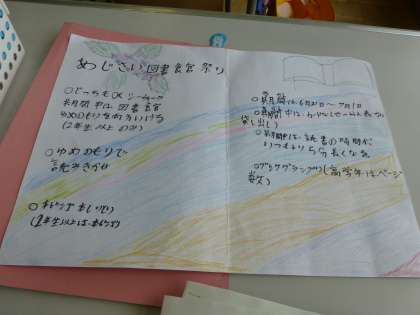 今日、図書委員の人たちが各教室を回って、図書館まつりのお知らせをしました。