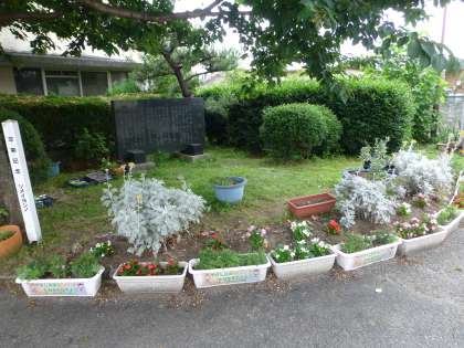 草ぼうぼうだった東門の花壇もきれいに整備されました。