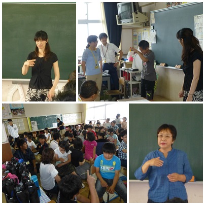 実際に講師の方に来ていただいて、手話で教えていただきました。もちろん訳してもらいながらですが。