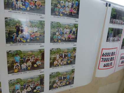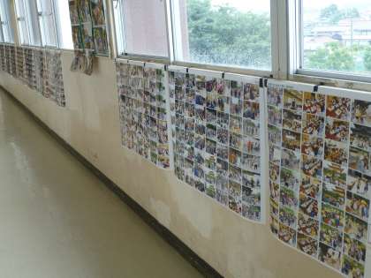 6年生の廊下に、修学旅行の写真が貼り出されていました。