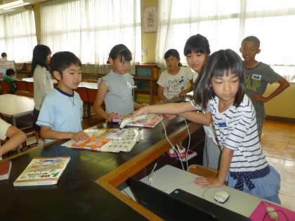 図書委員の人たちも、急いで貸し出しのチェックをしています。
