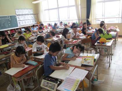4年生が漢字テストの前に、漢字の練習をしていました。