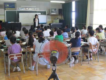 音楽室は、普通教室よりもずっと広いのですが、扇風機は同じだけの4つです。