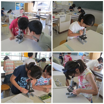 5年生が理科で微生物の観察をしていました。