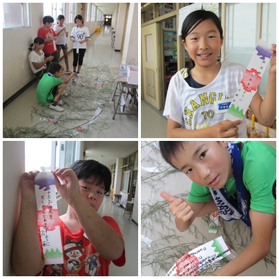 6年生がカメラを向けると、にっこりと短冊を見せてくれました。