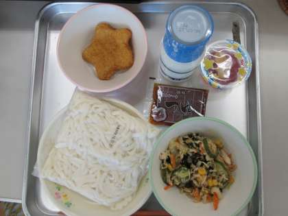 サラダうどん 牛乳 星形メンチカツ 七夕ゼリー