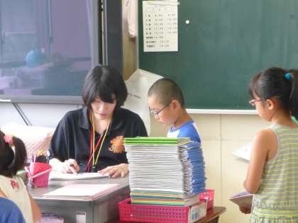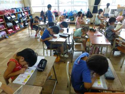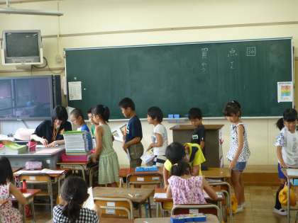 みんな先生に見てもらうために、きちんと並んでいました。、