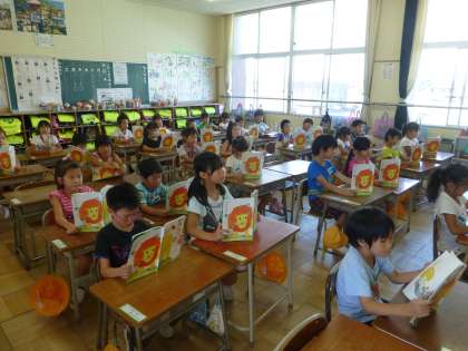 1年生が、おなじみの「おおきなかぶ」を音読していました。