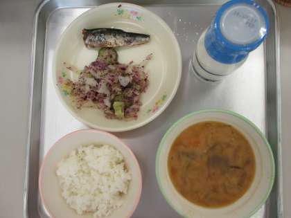 ごはん いわしのおかか煮 牛乳 ご汁 ゆかりあえ