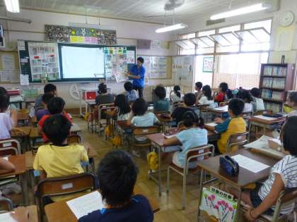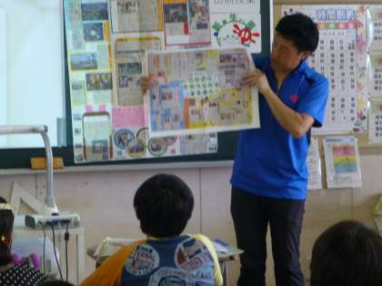 5年生が講師の先生をお招きして、NIEの講習を受けました。