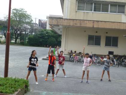 聞いてみると、運動会の応援団員で、みんなで練習しているとのこと。立派です。