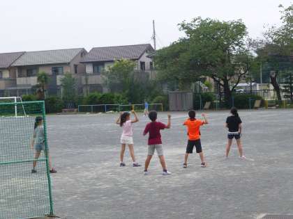 下校後、運動場で踊っている集団がありました。