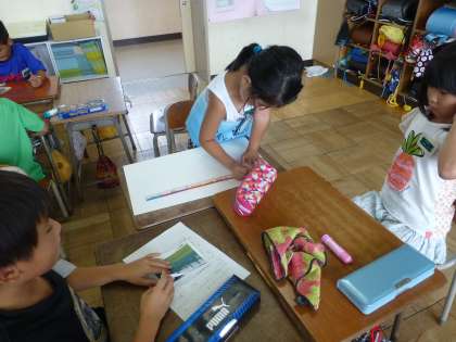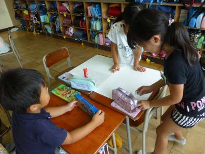 2年生が生活科で出かけたまちたんけんの新聞作りに入っていました。