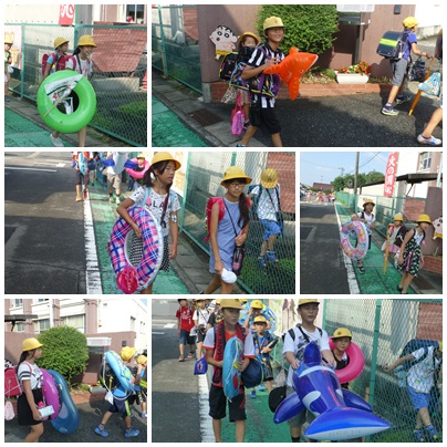 登校時、6年生が浮き輪を持ってくる子がいました。