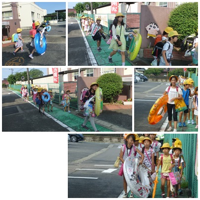 話を聞くと、今日、1年生といっしょにプールに入るのだそうです。