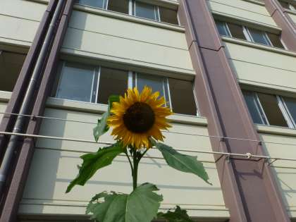 ひまわりは普通、南側を向きますが、本校のひまわりは北を向いています。