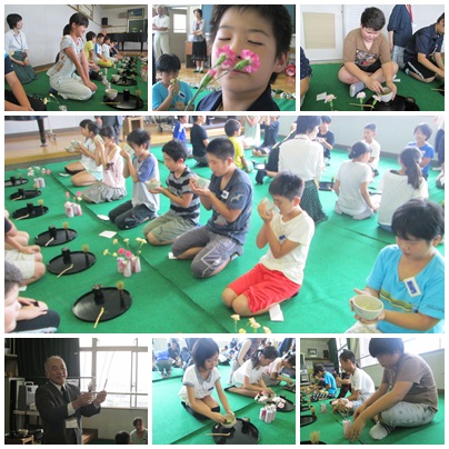 昨日の続きです。デモを見せていただいたあと、6年生が実際に茶の湯・生け花体験を行いました。相手に喜んでもらう心、自然といっしょになる心、教えていただいた作法をしっかり意識して、落ち着いた雰囲気の中、体験活動を進めることができました。予想以上の腕前でびっくりでした。「日本の心」に楽しく触れるひとときとなりました。