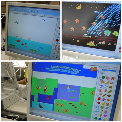 2年生が先日、ICTの講師の先生に教えてもらったことをもとにして、好きな絵を作り上げていました。