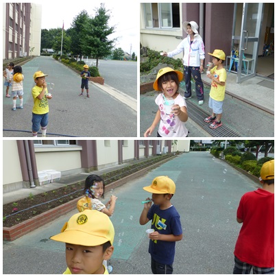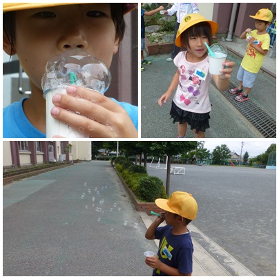 1年生別のクラスがシャボン玉で楽しんでいました。