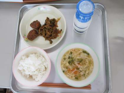 ごはん とうふだんご 牛乳 ゴーヤのみそ炒め かきたま汁