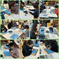図画工作では「木版画」に取り組んでいます。多くの児童が彫る作業に進みました。彫り...