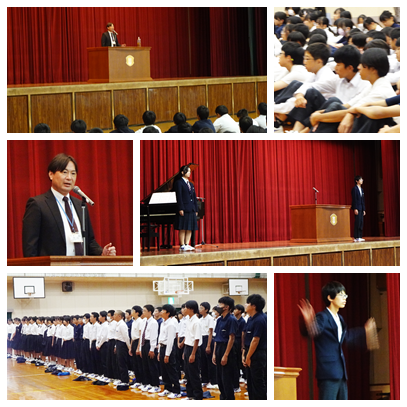 本日、前期の終業式を行いました。校長先生のお話を聞き、全校生徒で校歌を斉唱しました。