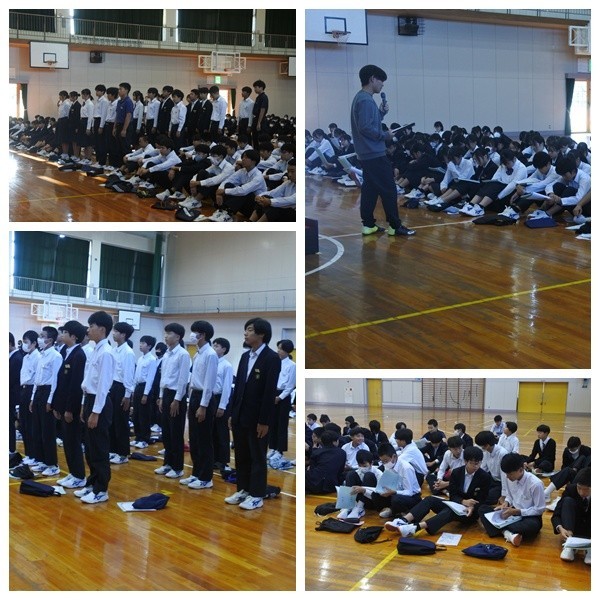 また、今日の1限に学年合唱を初めて体育館で合わせました。