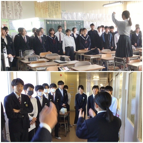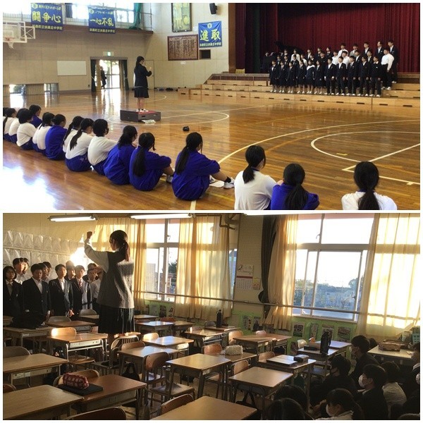 本日の合唱練習の様子です。昼休みには3組と1年4組、6限後には3組と4組が合同練習をしていました。合同練習をするとアドバイスをいただけるだけでなく、他クラスの合唱を聞いて学んだことを活かしてよりよい合唱を作り上げることができますね!