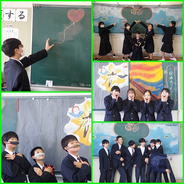 今日は進取祭2日目でした!写真は合唱練習と作品展示の鑑賞会の様子です。
