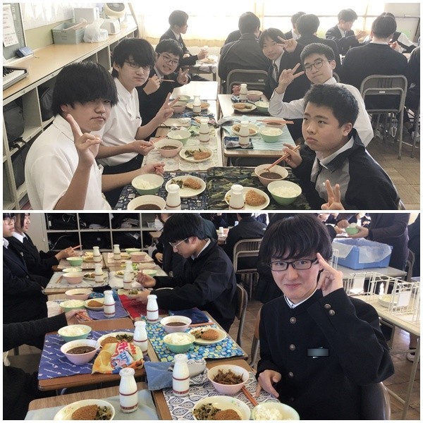 本日、2年生のクラス編成に戻って給食を食べました。