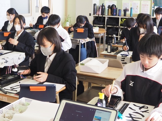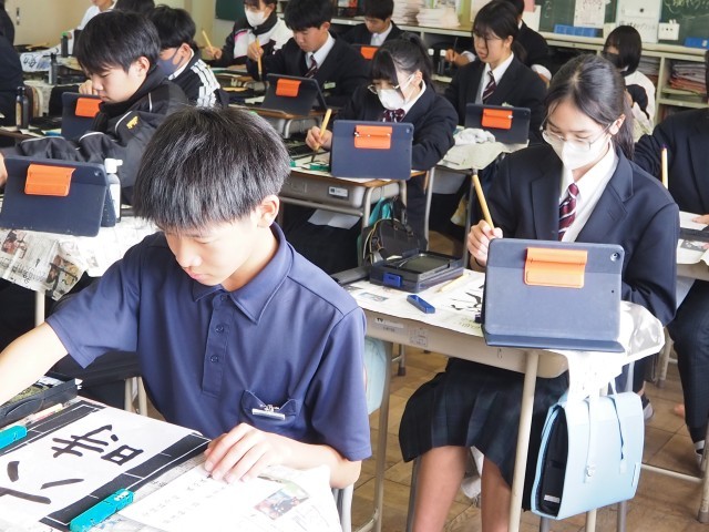 5限の書初めの様子です。今年の目標を考え、丁寧に清書していきました。タブレットで手本となる字を検索し、一筆一筆集中して書いていました。今年の目標を達成できるよう、1日1日大切にしていきましょう。