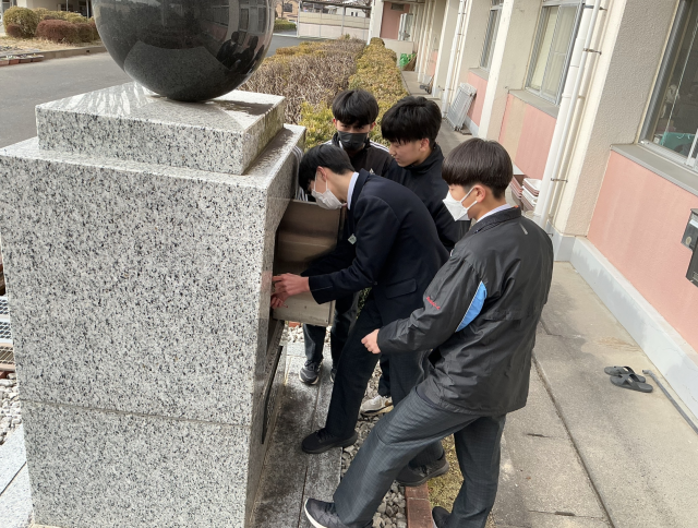 今日は、学年委員会の幹部、Ultra HEROesのメンバーで、進取の像から、「15歳の自分へ」の手紙を取り出しました。2年前、入学してすぐの頃、卒業前の自分へ向けて手紙を書きました。何を書いたのか覚えていますか?今から読むのが楽しみになりますね!2月にみんなで読む予定です。楽しみにして待っていよう!!