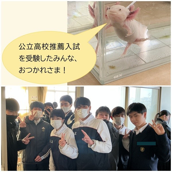 本日は公立高校推薦入試でした。受験したみなさん、おつかれさまでした!